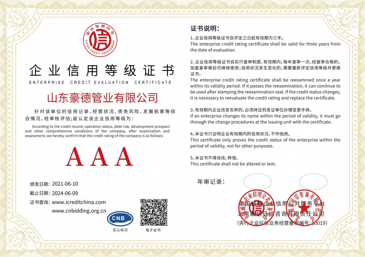 山東豪德管業(yè)有限公司豪德——專(zhuān)業(yè)pe管材生產(chǎn)廠家公司是聚乙烯PE管材管件生產(chǎn)建設(shè)基地,年產(chǎn)各類(lèi)PE管材近億噸,綜合性能好。