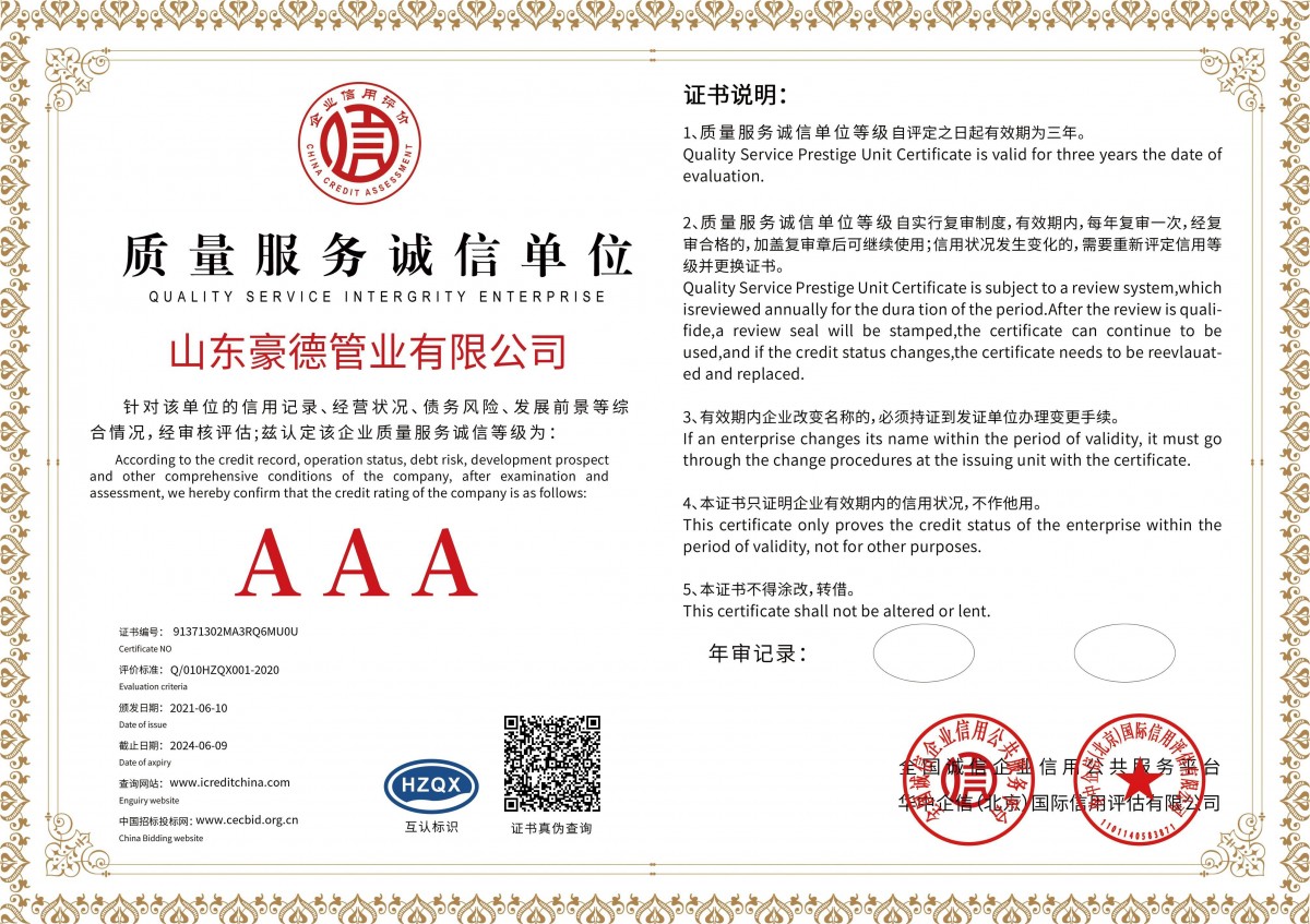 山東豪德管業(yè)有限公司豪德——專業(yè)pe管材生產(chǎn)廠家公司是聚乙烯PE管材管件生產(chǎn)建設(shè)基地,年產(chǎn)各類(lèi)PE管材近億噸,綜合性能好。